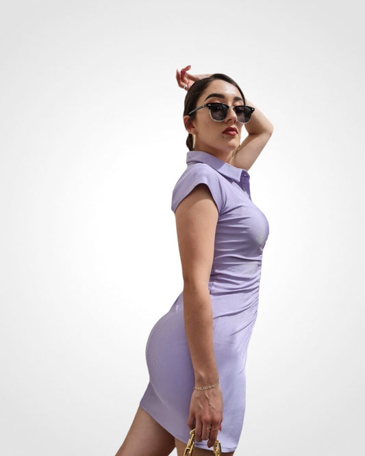 Vestido corto con pinzas en satín